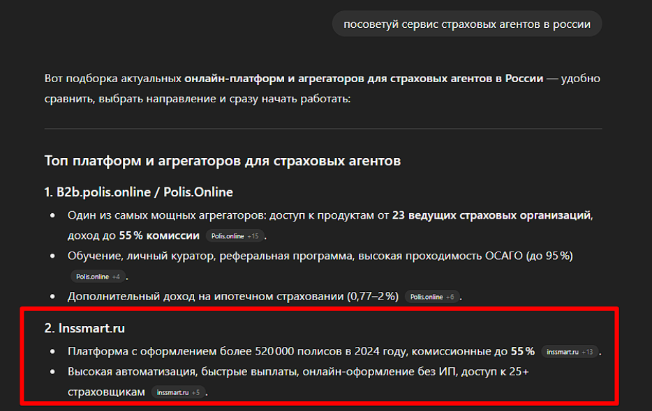 Уже с самого начала наш проект цитировался в GPT за счет правильной SEO-оптимизации.